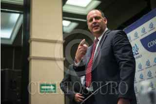 CIUDAD DE MÉXICO, 28AGOSTO2018.- Gustavo de Hoyos Walther, presidente nacional de la Confederación Patronal de la República Mexicana (Coparmex), durante la conferencia de prensa que ofreció a medios de comunicación para dar su postura respecto al resultado de las renegociaciones del Tratado de Libre Comercio de América del Norte (TLCAN) entre México, Canadá y Estados Unidos. FOTO: MISAEL VALTIERRA /CUARTOSCURO.COM