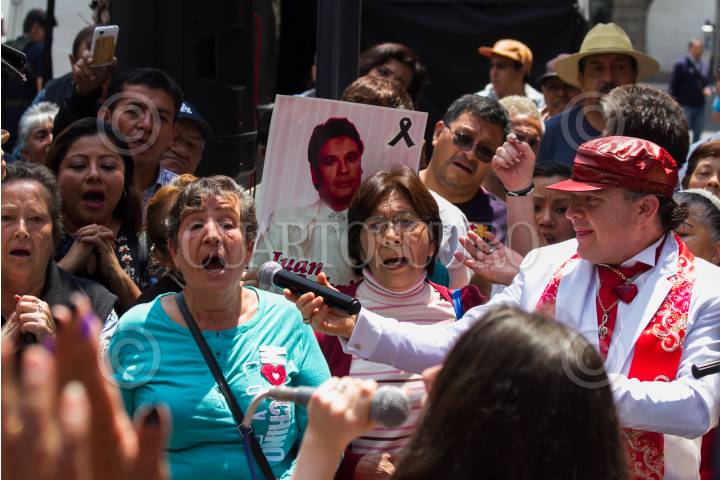 CIUDAD DE MÉXICO, 28AGOSTO2018.- Seguidores del desaparecido cantante Juan Gabriel se dieron cita en su estatua en la Plaza Garibaldi, para conmemorar su segundo aniversario luctuoso. Imitadores y cantantes entonaron las más emblemáticas canciones del llamado "Divo de Juárez", entre decenas de personas que las vitoreaban y las coreaban. FOTO: MOISÉS PABLO /CUARTOSCURO.COM