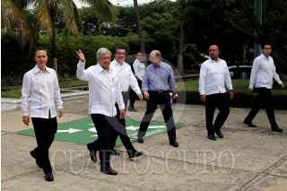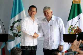 TUXTLA GUTIÉRREZ, CHIAPAS, 28AGOSTO2018.- Se reúnen en Chiapas el presidente electo de la república mexicana Andrés Manuel López Obrador y el presidente de la república de Guatemala, Jimmy Morales Cabrera, para tratar asuntos relacionados al fenómeno migratorio y trabajar en programas que ofrezcan mejores condiciones de vida a los pueblos de ambos países con la finalidad de que no se vean obligados a migrar. FOTO: JACOB GARCÍA /CUARTOSCURO.COM