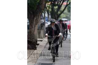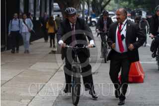 CIUDAD DE MÉXICO, 29AGOSTO2018.- Ricardo Monreal, coordinador de los senadores de Morena, llegó en bicicleta al recintos parlamentario, ubicado en Reforma e Insurgentes, hoy pasado el medio día los integrantes de la 64 Legislatura tomaron protesta en ambas cámaras. FOTO: MOISÉS PABLO /CUARTOSCURO.COM