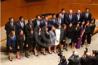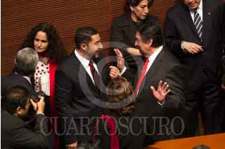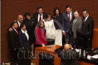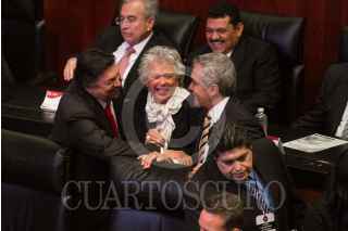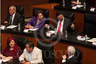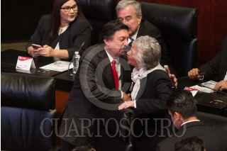 CIUDAD DE MÉXICO, 29AGOSTO2018.- Ifigenia Martínez fue nombrada para presidir la mesa directiva de decanos de la Cámara de Senadores, de la 64 Legislatura. En la imagen la acompaña Martí Batres, quien es el presidente de la mesa directiva del Senado de la República, para el primer año de trabajos. FOTO: MOISÉS PABLO /CUARTOSCURO.COM