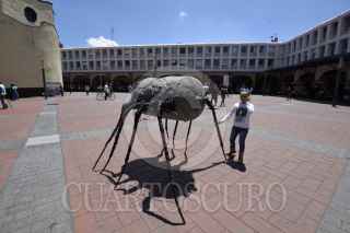 TOLUCA, ESTADO DE MÉXICO, 29AGOSTO2018.- La Plaza Fray Andrés de Castro es el escenario de la exposición “Irrupción” del escultor mexiquense Jesús Nonato Barón, integrada por cuatro esculturas de gran formato basadas en insectos, arañas, larvas y gusanos, como una forma de celebrar la grandeza de las pequeñas cosas. FOTO: ARTEMIO GUERRA BAZ /CUARTOSCURO.COM