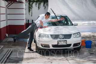 CIUDAD DE MÉXICO, 29AGOSTO2018.- Un señor lava el auto del presidente electo de México, Andrés Manuel López Obrador, en la casa de transición de la colonia Roma. FOTO: DIEGO SIMÓN SÁNCHEZ /CUARTOSCURO.COM