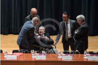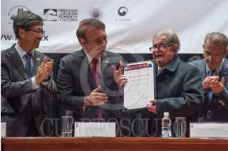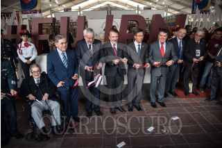 CIUDAD DE MÉXICO, 31AGOSTO2018.- Enrique Graue Wiechers, rector de la Universidad Nacional Autónoma de México (UNAM); Mario Alberto Rodríguez Casas, director general del Instituto Politécnico Nacional (IPN); y los doctores: Miguel León Portilla, y Pablo Rodomó Zevnovaty, encabezaron la ceremonia de inauguración de la XXXVII Feria Internacional del Libro del IPN. Miguel León Portilla recibió el Premio FIL-IPN en la categoría humanística, mientras que Pablo Rodomó en la categoría científica, como reconocimiento a sus destacadas trayectorias. FOTO: MARIO JASSO /CUARTOSCURO.COM