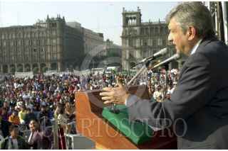 El jefe de gobierno capitalino, Andrés Manuel López Obrador, entregó hoy microcréditos a personas de diferentes delegaciones en la explanada del zócalo. FOTO: Juan Pablo Zamora/CUARTOSCURO.COM