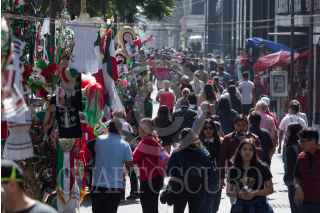 CIUDAD DE MÉXICO, 02SEPTIEMBRE2018.- A comenzado la venta de artículos con motivo de las fiestas patrias. Así como, la instalación de los adornos monumentales en las inmediaciones del Zócalo capitalino para los días 15 y 16 de presente. FOTO: GALO CAÑAS /CUARTOSCURO.COM