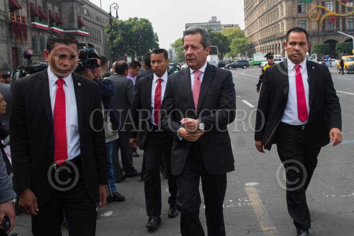CIUDAD DE MÉXICO, 03SEPTIEMBRE2018.- Una mujer con una tatuaje de la Santa Muerte en la espalda mira el balcón presidencial del Palacio Nacional, lugar en donde hoy se realizó el 6to Informe de Gobierno del Presidente de México, Enrique Peña Nieto, diversas ONG y organizaciones sociales calculan en más de cien mil homicidios dolosos, muchos ligados a la lucha contra el crimen organizado. FOTO: MOISÉS PABLO /CUARTOSCURO.COM