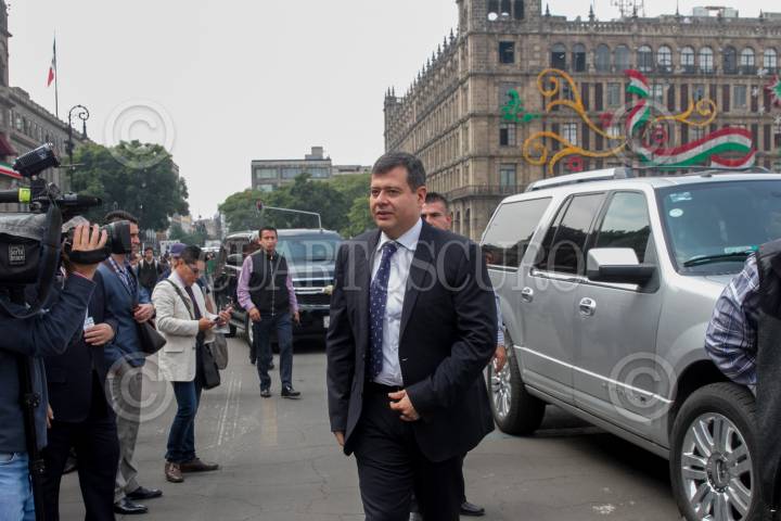 CIUDAD DE MÉXICO, 03SEPTIEMBRE2018.- Una mujer con una tatuaje de la Santa Muerte en la espalda mira el balcón presidencial del Palacio Nacional, lugar en donde hoy se realizó el 6to Informe de Gobierno del Presidente de México, Enrique Peña Nieto, diversas ONG y organizaciones sociales calculan en más de cien mil homicidios dolosos, muchos ligados a la lucha contra el crimen organizado. FOTO: MOISÉS PABLO /CUARTOSCURO.COM