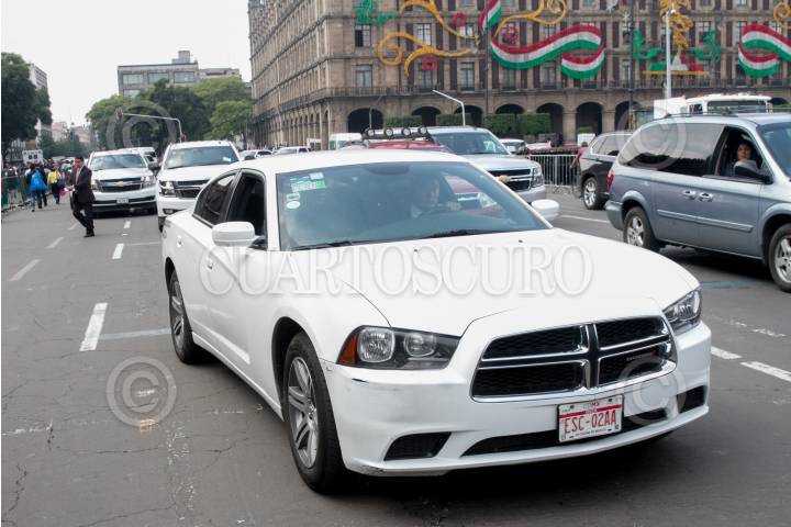 CIUDAD DE MÉXICO, 03SEPTIEMBRE2018.- Una mujer con una tatuaje de la Santa Muerte en la espalda mira el balcón presidencial del Palacio Nacional, lugar en donde hoy se realizó el 6to Informe de Gobierno del Presidente de México, Enrique Peña Nieto, diversas ONG y organizaciones sociales calculan en más de cien mil homicidios dolosos, muchos ligados a la lucha contra el crimen organizado. FOTO: MOISÉS PABLO /CUARTOSCURO.COM
