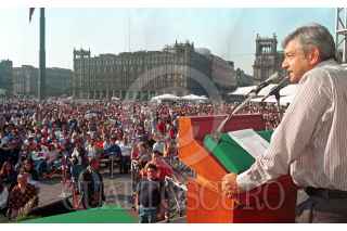 El jefe de gobierno, Andrés Manuel López Obrador, entregó en la explanada del Zócalo 4 mil 079 créditos para acciones de mejoramiento y construcción de vivienda nueva en lote familiar. FOTO: Sandra Perdomo/CUARTOSCURO.COM