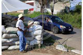 TOTOLAPAN, MORELOS, 04SEPTIEMBRE2018.-Una calle con postes derribados y cadenas que impiden el tránsito en la comunidad de Nepopualco, desde hace dos meses habitantes de Los Altos de Morelos se organizaron para conformar grupos de vigilancia vecinal por el incremento de la delincuencia. FOTO: MARGARITO PÉREZ RETANA /CUARTOSCURO.COM
