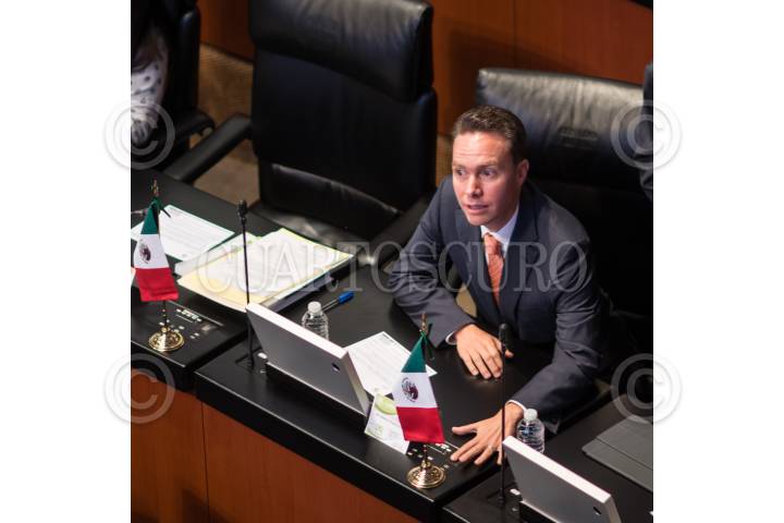 CIUDAD DE MÉXICO, 04SEPTIEMBRE2018.- Lo senadores Ricardo Monreal Ávila y Miguel Ángel Osorio Chong, coordinadores de los grupos parlamentarios de Morena y el Partido Revolucionario Institucional (PRI), durante la primera sesión del periodo ordinario de la LXIV Legislatura en el Senado de la República. FOTO: MISAEL VALTIERRA / CUARTOSCURO.COM