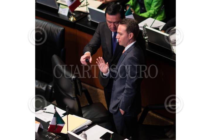 CIUDAD DE MÉXICO, 04SEPTIEMBRE2018.- Lo senadores Ricardo Monreal Ávila y Miguel Ángel Osorio Chong, coordinadores de los grupos parlamentarios de Morena y el Partido Revolucionario Institucional (PRI), durante la primera sesión del periodo ordinario de la LXIV Legislatura en el Senado de la República. FOTO: MISAEL VALTIERRA / CUARTOSCURO.COM