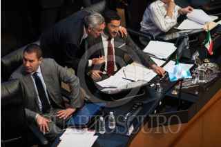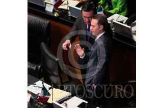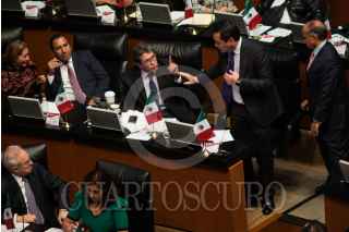 CIUDAD DE MÉXICO, 04SEPTIEMBRE2018.- Lo senadores Ricardo Monreal Ávila y Miguel Ángel Osorio Chong, coordinadores de los grupos parlamentarios de Morena y el Partido Revolucionario Institucional (PRI), durante la primera sesión del periodo ordinario de la LXIV Legislatura en el Senado de la República. FOTO: MISAEL VALTIERRA / CUARTOSCURO.COM