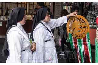 CIUDAD DE MEXICO. 04SEPTIEMBRE2018.- Dos monjas realizan compras referentes a la celebración de las fiestas patrias, en un puesto ambulante en el Zócalo capitalino. FOTO: MARIO JASSO /CUARTOSCURO.COM