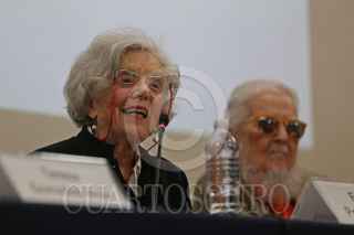 GUADALAJARA, JALISCO, 04SEPTIEMBRE2018.- Los escritores Elena Poniatowska y Fernando del Paso encabezaron la conferencia magistral "En Palinuro de México cabe el Mundo Entero", esto en el auditorio Salvador Allende del Centro Universitario de Ciencias Sociales y Humanidades (CUCSH) de la Universidad de Guadalajara, a mencionado evento asistió el escritor Juan Villoro. FOTO: FERNANDO CARRANZA GARCIA / CUARTOSCURO.COM