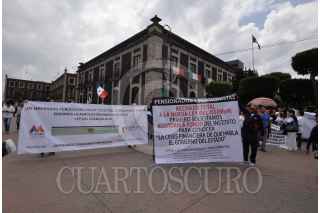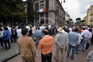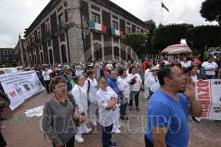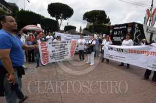 TOLUCA, ESTADO DE MÉXICO, 05SEPTIEMBRE2018.- Contingentes de taxistas, pensionados y trabajadores se manifestaron en las inmediaciones de la Cámara de Diputados durante la apertura del primer periodo de sesiones de la LX Legislatura local, en contra de la Ley ISSEMYM y la Gaceta de Gobierno del 20 de Marzo. FOTO: ARTEMIO GUERRA BAZ /CUARTOSCURO.COM
