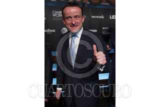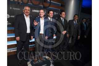 CIUDAD DE MÉXICO, 05SEPTIEMBRE2018.- Guadalupe Acosta Naranjo; Ricardo Anaya, ex candidato presidencial; Enrique Vargas, presidente municipal de Huixquilucan; Damián Zepeda, dirigente nacional del PAN, y el diputado, Jorge Luis Preciado, durante su llegada a la Comida Anual con los 300 Líderes Más Influyentes de México, realizada en la Expo Santa Fe. FOTO: MARIO JASSO /CUARTOSCURO.COM