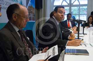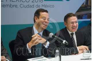 CIUDAD DE MÉXICO, 06SEPTIEMBRE2018.- Paulo Carreño King, de ProMexico y José Rosas Aispurpo, gobernador de Durango durante la presentación de una Expo de Bebidas destiladas a realizarse en este Estado. FOTO: VICTORIA VALTIERRA /CUARTOSCURO.COM