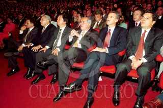 Los gobernadores de Yucaan y Taasco, Victor Cervera y Roberto Madrazo respectivamente, durante el primer Informe de Gobierno de Arturo Montiel. FOTO: Eduardo Loza/CUARTOSCURO.COM