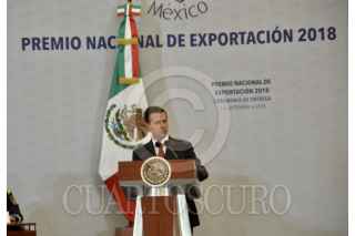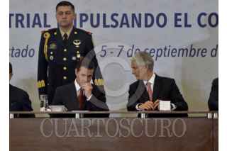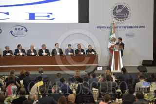 TOLUCA, ESTADO DE MÉXICO, 07SEPTIEMBRE2018.- Enrique Peña Nieto, presidente de la República Mexicana realizó la entrega del Premio Nacional de Exportación y Clausura del XXV del Congreso de Comercio Exterior Mexicano, acompañado por el gobernador Mexiquense Alfredo del amado Maza, Valentín Díez amoroso, presidente del Comce, Ildefonso Guajardo Villarreal, Secretario de Economía. FOTO: ARTEMIO GUERRA BAZ /CUARTOSCURO.COM