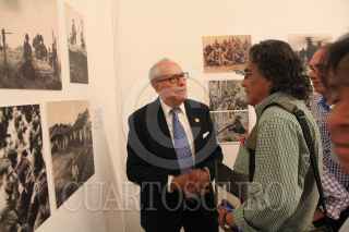 SAN LUIS POTOSÍ, 08SEPTIEMBRE2018.- Javier Vallejo Coronel, fotógrafo durante 30 años de cadena García Valseca, que editaban los periódicos El Sol de México, inauguró anoche su exposición fotográfica "30 años de fotoperiodismo gráfico" que incluyen reportajes en Bolivia, Chile Vietman entre otros, las imágenes fueron expuestas en la sala dos de Centro de las Artes de San Luis Potosi. El fotógrafo Pedro Valtierra director de Cuartoscuro acompaño al autor de la exposición y mencionó que fue invitado "Porque Javier Vallejo fue uno de mis jefes en el Sol de México en los años 1977-1978". FOTO: MARCELO PALACIOS CUARTOSCURO.COM