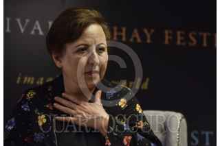 QUERÉTARO, QUERÉTARO, 08SEPTIEMBRE2018.- La abogada iraní Shirin Ebadi, ganadora del Nobel de la Paz en 2013, compartió con los medios sus experiencias en su lucha por los derechos humanos y democracia en su país. Además compartió su última publicación “Hasta que seamos libres”, en el marco del “Hay Festival Imagina el Mundo” celebrado en esta entidad. FOTO: MARIO JASSO /CUARTOSCURO.COM