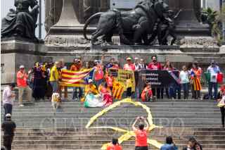 CIUDAD DE MÉXICO, 09SEPTIEMBRE2018.- Integrantes de la comunidad catalana en la capital realizaron una protesta, en las escalinatas del Ángel de la Independencia, para exigir la liberación de presos políticos. FOTO: GALO CAÑAS /CUARTOSCURO.COM
