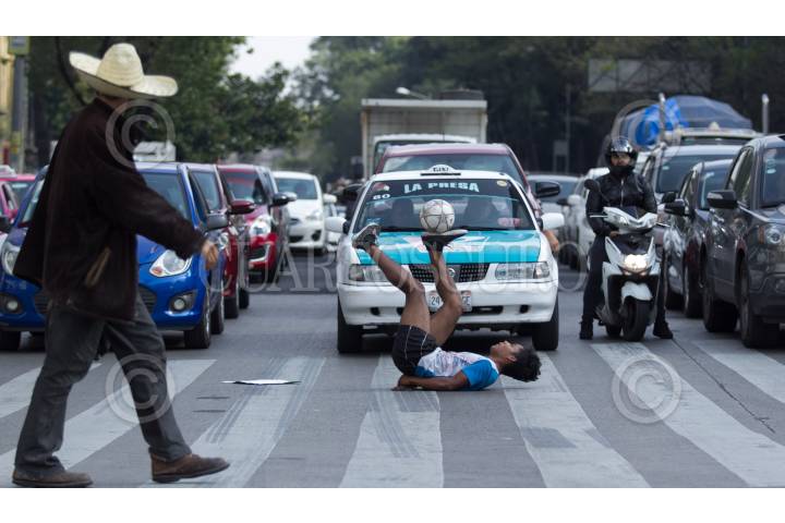 CIUDAD DE MÉXICO, 09SEPTIEMBRE2018.- Joven da un expectáculo de freestyle, en el cruce entre Paseo de la Reforma y la Calle de Bucareli. FOTO: RODRIGO RUBIO /CUARTOSCURO.COM