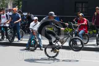 CIUDAD DE MÉXICO, 09SEPTIEMBRE2018.- Jóvenes en bicis de acrobacia "BMX" pasean por el zócalo capitalino, a su paso ofrecieron algunos saltos y suertes. FOTO: MOISÉS PABLO /CUARTOSUCRO.COM