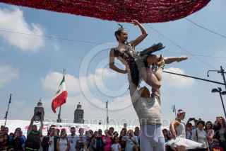 CIUDAD DE MÉXICO, 09SEPTIEMBRE2018.- En el cruce peatonal de 20 de Noviembre y Plaza de la Constitución fue presentado el ultimo show de la Compañía Ardentía, “Danza en la Calle de Teatros en tu Barrio“. El proyecto formaba parte de la novena edición de Teatro de Plazas Públicas de la Secretaría de Cultura de la capital. FOTO: MAGDALENA MONTIEL /CUARTOSCURO.COM