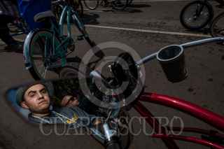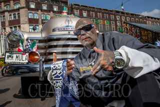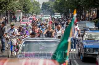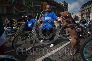 CIUDAD DE MÉXICO, 09SEPTIEMBRE2018.- Ciclistas y automotores del grupo "Chilangos Lowbike" realizaron una rodada del zócalo a la avenida Reforma, para dar a conocer el movimiento "Low Rider" en el área metropolitana. Sus miembros proceden de diversas colonias del Estado de México y la CDMX. La cultura Low Rider fue una forma de manifestación de la cultura chicana (cultura mexicana-estadounidense) que poco a poco fue permeando en la cultura afroamericana y otras en general, en la cual se modificaban coches clásicos y bicicletas, como una forma de vivir y manifestarse ante la sociedad. FOTO: JUAN PABLO ZAMORA /CUARTOSCURO.COM