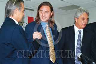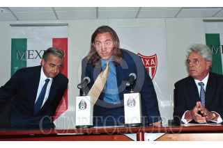 Alex Aguinaga anunció su salida del equipo de los Rayos del Necaxa, el jugador ofreció una rueda de prensa en la Federación Mexicana de Fútlbol, lo acompaño Víctor Sarazua y Justino Compián, presidente del equipo del Necaxa. FOTO: Moisés Pablo/CUARTOSCURO.COM