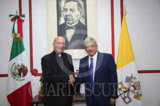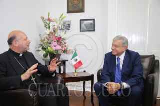 CIUDAD DE MÉXICO, 10SEPTIEMBRE2018.- Andrés Manuel López Obrador, presidente electo de México se reunió con Franco Coppola, nuncio apostólico. FOTO: CUARTOSCURO.COM