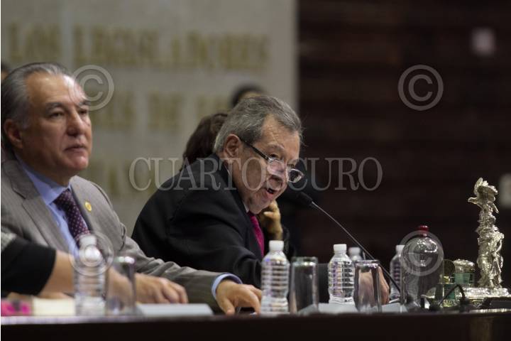 CIUDAD DE MÉXICO, 11SEPTIEMBRE2018.- Pablo Gómez, diputado morenista; Mario Delgado, coordinador de los diputados de Morena, y los diputados morenistas Zoe Robledo y Horacio Duarte, así como Carlos Puente Salas, coordinador de la bancada del Partido Verde Ecologista de México, durante la sesión ordinaria de la Cámara Baja de la LXIV Legislatura. FOTO: GALO CAÑAS /CUARTOSCURO.COM