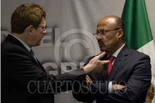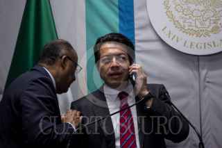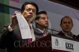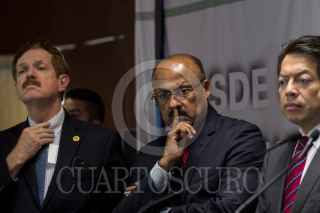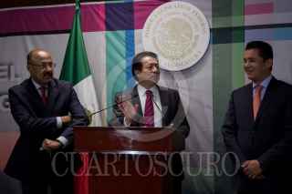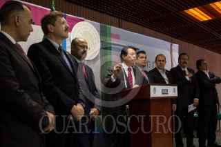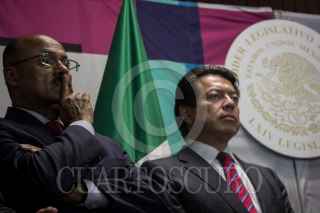 CIUDAD DE MÉXICO, 11SEPTIEMBRE2018.- Juan Carlos Romero Hicks, coordinador de los panistas, Mario Delgado, coordinador morenista, y René Juárez Cisneros, coordinador de los priistas, todos en Cámara de Diputados. Durante la conferencia de prensa para anunciar el acuerdo de recorte a los gastos en la presente Legislatura. FOTO: GALO CAÑAS /CUARTOSCURO.COM
