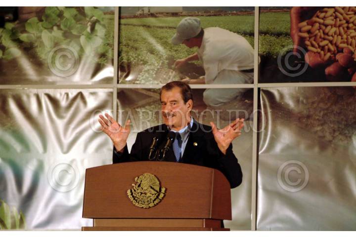 Vicente Fox se despide de Yeickol Polevsky, presidenta de la CANACINTRA al termino de la XX Asamblea General Ordinarioa del Consejo Nacional Agropecuario. FOTO: Nelly Salas/CUARTOSCURO.COM
