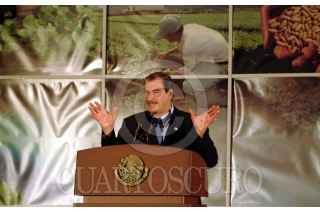 Vicente Fox se despide de Yeickol Polevsky, presidenta de la CANACINTRA al termino de la XX Asamblea General Ordinarioa del Consejo Nacional Agropecuario. FOTO: Nelly Salas/CUARTOSCURO.COM