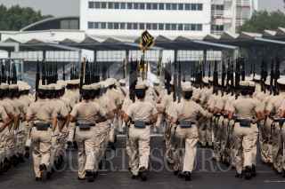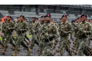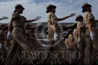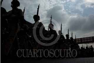CIUDAD DE MÉXICO, 12SEPTIEMBRE2018.- La Secretaría de Marina (Semar) realiza el pase de revista a las tropas que participarán en el desfile conmemorativo del 208 aniversario del inicio de la Independencia de México. La pista utilizada para la competencia de Fórmula 1, en la Magdalena Mixuca en la Ciudad de México, se convirtió en el centro de operaciones en el cual se afinan los detalles del contingente integrado por un total de tres mil 810 hombres. En la columna participarán pilotos, infantes, fuerzas especiales, paracaidistas, y marinos que toman parte en acciones de apoyo social y en caso de desastre en comunidades mexicanas, así como en operaciones antinarcóticos y de vigilancia del espacio aéreo, marítimo y terrestre. FOTO: GALO CAÑAS /CUARTOSCURO.COM