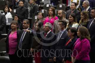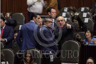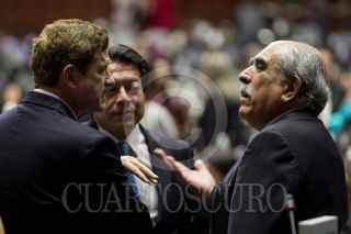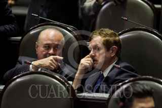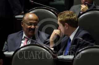 CIUDAD DE MÉXICO, 13SEPTIEMBRE2018.- René Juárez Cisneros, coordinador de la bancada priista, y Juan Carlos Romero Hicks, coordinador panista, durante la sexta sesión ordinaria de la LXIV legislatura en la Cámara Baja. FOTO: GALO CAÑAS /CUARTOSCURO.COM