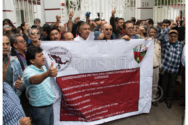 CIUDAD DE MÉXICO, 13SEPTIEMBRE2018.- Trabajadores petroleros protestaron a las afueras de la casa de transición de Andrés Manuel López Obrador ubicado en la colonia Roma. FOTO: SAÚL LÓPEZ /CUARTOSCURO.COM