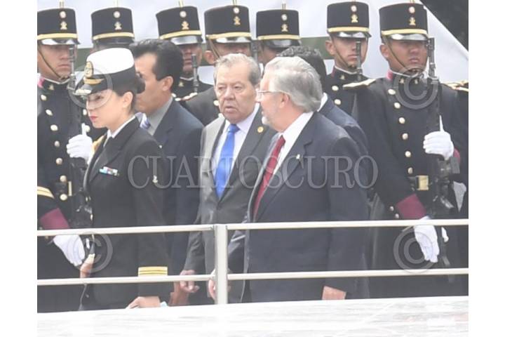 CIUDAD DE MÉXICO, 13SEPTIEMBRE2018.- Luis Maria Aguilar, presidente de la Suprema Corte de Justicia de la Nación, conversa con Porfirio Muñoz Ledo, presidente de la Cámara de Diputados, durante el 171 Aniversario de la Gesta Heroica de los Niños Héroes de Chapultepec, realizada en el Altar a la Patria. FOTO: CUARTOSCURO.COM