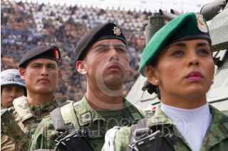 CIUDAD DE MÉXICO, 14SEPTIEMBRE2018.- Esta mañana en el campo militar No. 1 se llevo acabo el Desfile Militar previo al del 16 de septiembre. Vidal Francisco Soberon Sanz y Salvador Cienfuegos, encabezaron la marcha Castrense. FOTO: VICTORIA VALTIERRA /CUARTOSCURO.COM