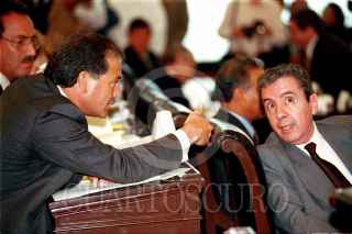 Genaro Borrego Estrada y Humberto Roque platican en la sesion ordinaria del H. Senado de la República, antes de que el senador Joel Ayala sufriera un infarto. FOTO: Victoria Valtierra/CUARTOSCURO.COM