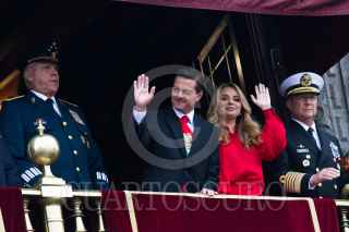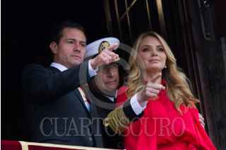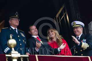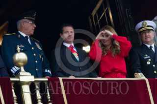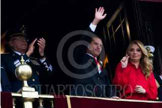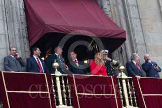 CIUDAD DE MÉXICO, 16SEPTIEMBRE2018.- Enrique Peña Nieto, Presidente de México y Comandante Supremo de la Fuerzas Armadas, paso revista a las tropas militares en la plancha del Zócalo, para después admirar el desfile conmemorativo del 208 Aniversario de la Independencia de México. En el balcón de Palacio Nacional, lo acompañaron Alfonso Navarrete Prida, secretario de Gobernación; Martí Batres, presidente de la Cámara del Senado; Salvador Cienfuegos, secretario de la Defensa; Angélica Rivera de Peña, esposa del mandatario; Vidal Francisco Soberón Sanz, secretario de Marina; Luis María Aguilar, presidente de la SCJN, y Renato Sales, Comisionado Nacional de Seguridad. FOTO: MOISÉS PABLO /CUARTOSCURO.COM