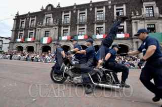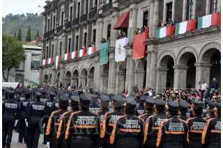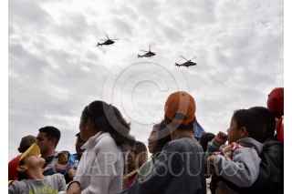 TOLUCA, ESTADO DE MÉXICO, 16SEPTIEMBRE2018.- En la ciudad de Toluca se llevó a cabo el desfile cívico militar del 208 Aniversario de la Independencia de México, en donde participaron elementos de la SEDENA, Secretaria de Seguridad, estudiantes mexiquenses, cuerpos de emergencias, carros alegóricos, integrantes de pueblos originarios, pilotos de la Fuerza Aérea Mexicana quienes tripularon aviones Boing 737; también participaron tres helicópteros del Grupo de Rescate Aéreo “Relámpagos”. FOTO: ARTEMIO GUERRO BAZ /CUARTOSCURO.COM
