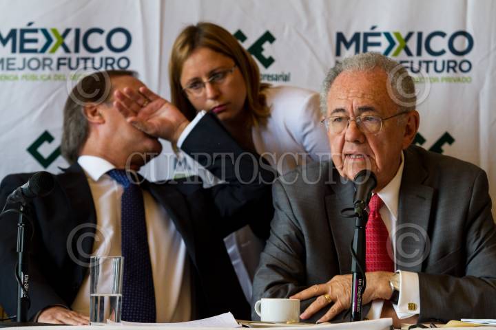 CIUDAD DE MÉXICO, 18SEPTIEMBRE2018.- Los integrantes del Consejo Coordinador Empresarial encabezados por su presidente, Juan Pablo Castañón, entrego al próximo Secretario de Transportes, Javier Jiménez Espriú, un diagnóstico técnico y financiero por el cual ellos recomiendan se continué con la construcción del Nuevo Aeropuerto Internacional de la Ciudad (NAIC) en Texcoco. En la imagen Jiménez Espríu conversa con Bosco de la Vega, presidente del Consejo Nacional Agropecuario, y José Méndez Fabre, presidente de la AMIB. FOTO: MOISÉS PABLO /CUARTOSCURO.COM