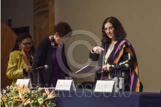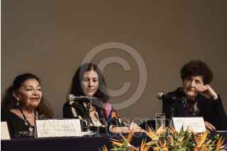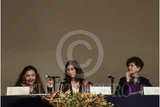 CIUDAD DE MÉXICO, 18SEPTIEMBRE2018.- La investigadora y profesora de literatura, Sarah Poot Herrera; la investigadora Luz Elena Gutiérrez de Velasco y la escritora Margo Glantz, encabezaron el conversatorio en el ciclo homenaje al escritor Juan José Arreola, llevado a cabo en la sala Manuel M. Ponce del Palacio de Bellas Artes. FOTO: MARIO JASSO /CUARTOSCURO.COM
