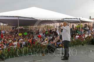 IXTEPEC, OAXACA, 19SEPTIEMBRE2018.- Andrés Manuel López Obrador, presidente electo de México, asistió con habitantes daminifacados de los sismos del 2017 en el Itsmo de Tehuantepec y presentó el plan nacional de reconstruccion. FOTO: SAÚL LÓPEZ /CUARTOSCURO.COM
