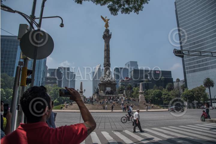 CIUDAD DE MÉXICO, 19SEPTIEMBRE2018.- Cientos de personas participaron esta tarde en los alrededores del Ángel de la Independencia durante el macrosimulacro realizado con motivo de los aniversarios de los sismos de 1985 y del año pasado. FOTO: MARIO JASSO /CUARTOSCURO.COM